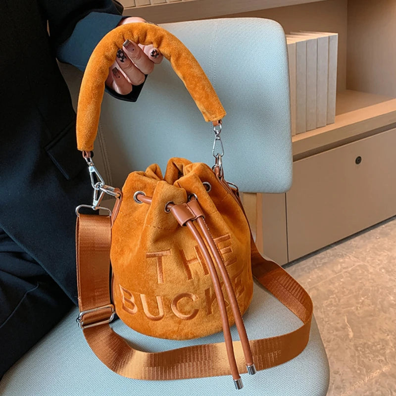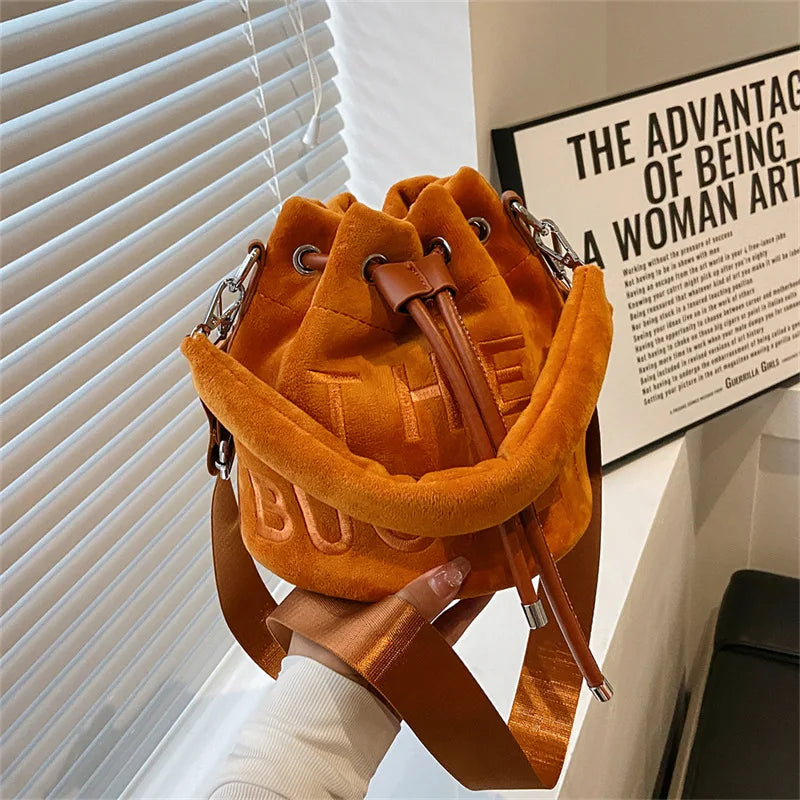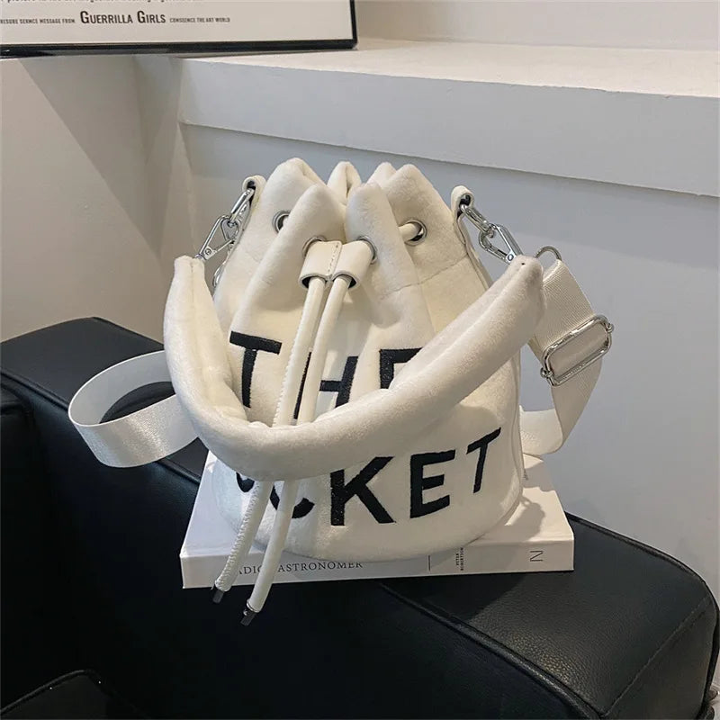 Plush Bucket Bags for Women 2022 New Luxury Designer Handbag Fashion Letter Print High Quality Cute Crossbody Shoulder Bag Woman
