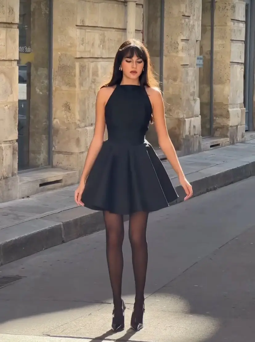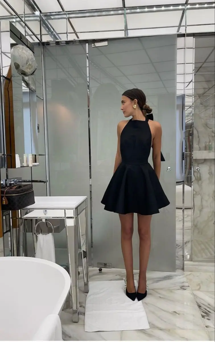 Venusiva Backless Halter Mini Dress Women's Sexy Sleeveless A-Line Short Dress Elegant Spring Summer Holiday Streetwear