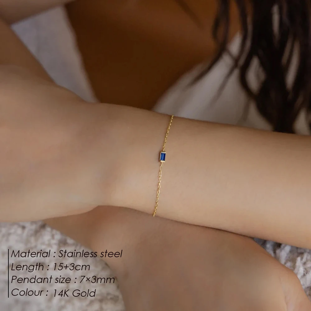 Venusiva eManco Stainless Steel Birthstone Bracelet 7x3MM Square Geometric Sparkling Rhinestone Bangle Fashion Jewelry Gift for Women